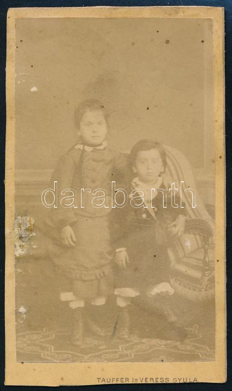 cca 1870 Gyerekek, vizitkártya Tauffer és Veress Gyula kolozsvári műte... https://www.darabanth.com/de/457-Fernauktion/457.0/Kunst-Dokumente-andere-Sammelgebiete/Foto~500026/cca-1870-Gyerekek-vizitkartya-Tauffer-es-Veress-Gyula-kolozsvari-mutermebol-kisse-serult-~II3058681