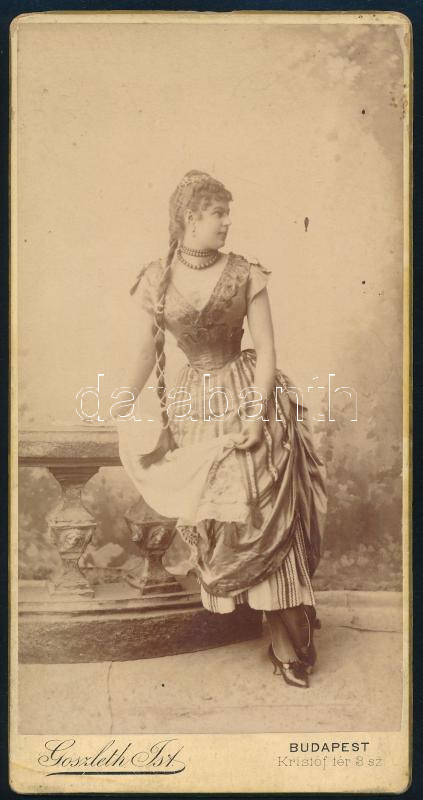 cca 1890 "A kis művésznőtől...", feltehetőleg színésznő port... https://www.darabanth.com/de/457-Fernauktion/457.0/Kunst-Dokumente-andere-Sammelgebiete/Foto~500026/cca-1890-A-kis-muvesznotol-feltehetoleg-szineszno-portreja-kemenyhatu-foto-Goszl~II3062024