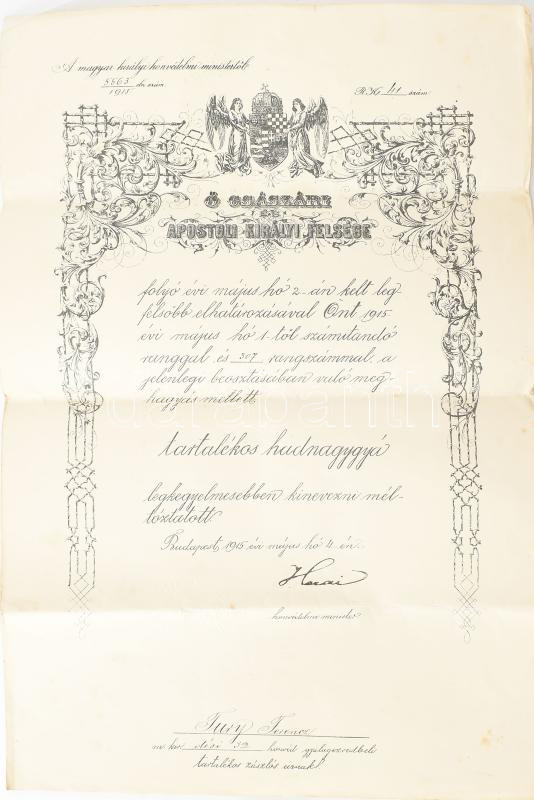 1915 Tartalékos hadnagyi kinevezés, báró Hazai Samu honvédelmi miniszt... https://www.darabanth.com/de/457-Fernauktion/457.0/Kunst-Dokumente-andere-Sammelgebiete/Militaria~1500011/1915-Tartalekos-hadnagyi-kinevezes-baro-Hazai-Samu-honvedelmi-miniszter-nyomtatott-alairasC3~II3056322