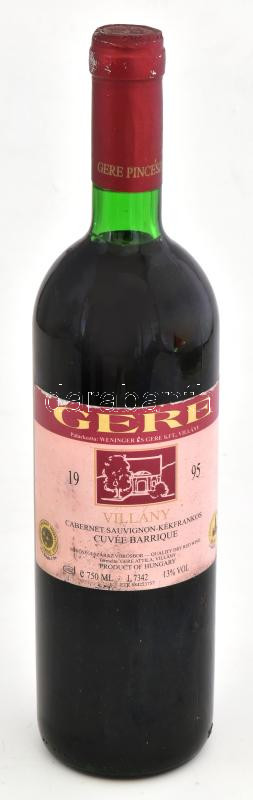 Beschreibung: 1995 Gere Villányi Cabernet Sauvignon - Kékfrankos Cuvée Barrique, bontatlan palack száraz vörösbor, 13%, pincében szakszerűen tárolt, 0,75 l.