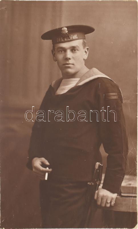 cca 1916 Az osztrák-magyar haditengerészet S.M.S. Wildfang hajóján szolgáló matróz fotólap / Photograph of a young member of the crew of S.M.S. Wildfang. It is a photograph taken at the American Photographers studio in Vienna.