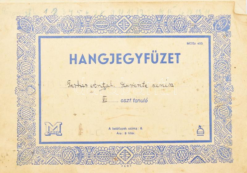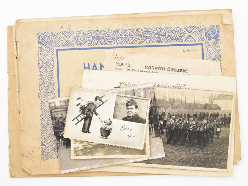 cca 1930-1940 Szegedi levente zenész hagyaték tétel, össz. 8 db: fotók (4 db), nyomtatott kották (2 db, az egyik dedikált), hangjegyfüzetek kézzel írt kottákkal (2 db). Változó állapotban.