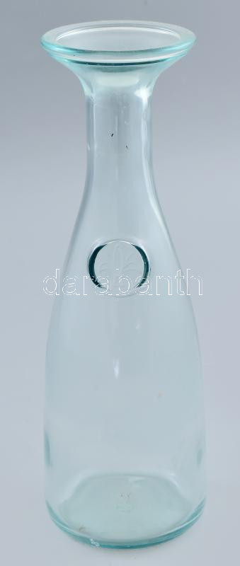 Beschreibung: Cserkész szimbólumos üveg dekantáló, zöldes üveg, hibátlan, m: 27,5 cm