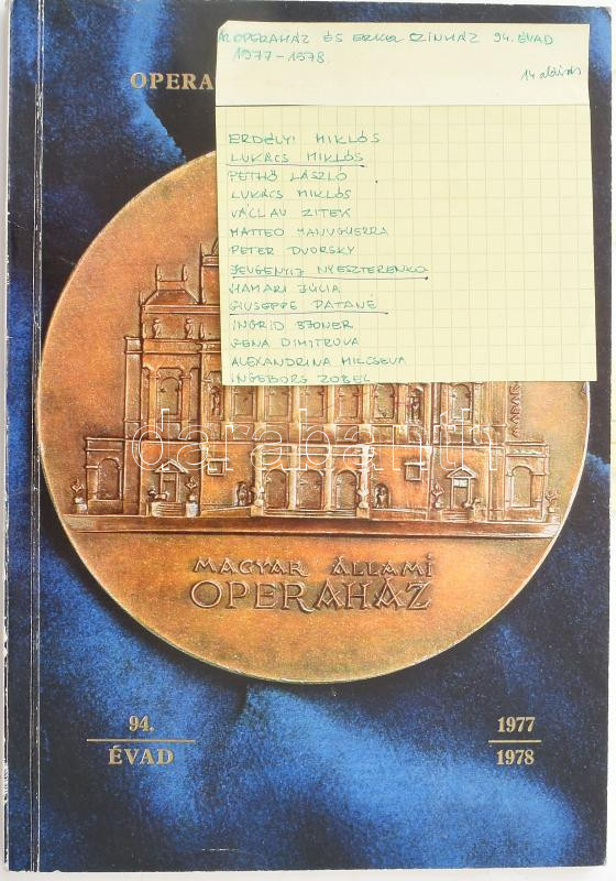 Beschreibung: Operaház és Erkel Színház 1977-1978. évi évad programfüzete, 14 db aláírással (Lukács Miklós, Peter Dvorsky, Jevgenyij Nyeszterenko, stb.)