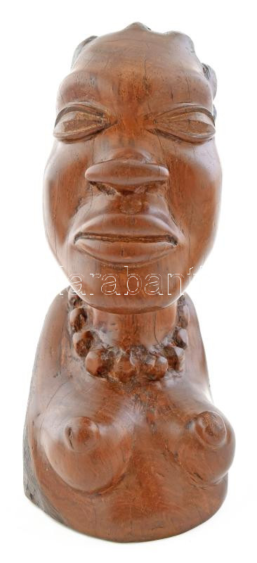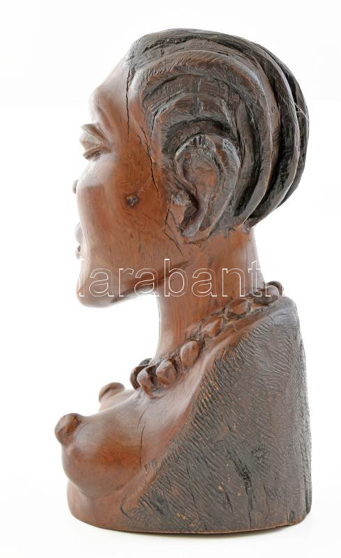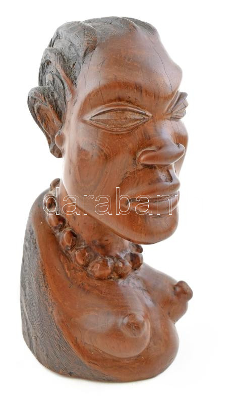 Női félakt. Afrikai faragott fa szobor. Keményfa, 26 cm