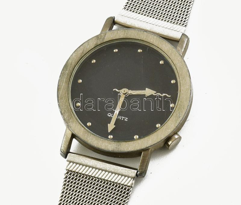 Kvarc karóra, fém szíjjal, működik, karcokkal, számlap d: 28 mm https://www.darabanth.com/de/457-Fernauktion/457.0/Kunst-Dokumente-andere-Sammelgebiete/Uhren~500013/Kvarc-karora-fem-szijjal-mukodik-karcokkal-szamlap-d-28-mm~II3034703