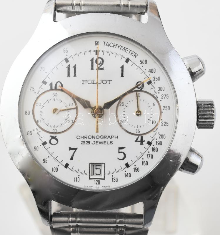 Poljot Chronograph 23 köves kézi felhúzós szerkezettel. fém tokkal, fé... https://www.darabanth.com/de/457-Fernauktion/457.0/Kunst-Dokumente-andere-Sammelgebiete/Uhren~500013/Poljot-Chronograph-23-koves-kezi-felhuzos-szerkezettel-fem-tokkal-fem-szijjal-mukodo-j~II3051911