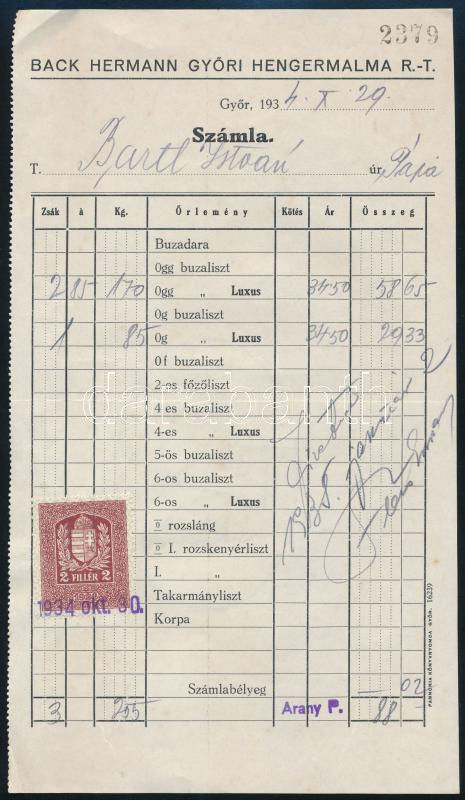 1934 Back Hermann Győri Hengermalma R.T. fejléces számla https://www.darabanth.com/de/457-Fernauktion/457.0/Kunst-Dokumente-andere-Sammelgebiete/Werbungen~2000359/1934-Back-Hermann-Gyori-Hengermalma-RT-fejleces-szamla~II3053127