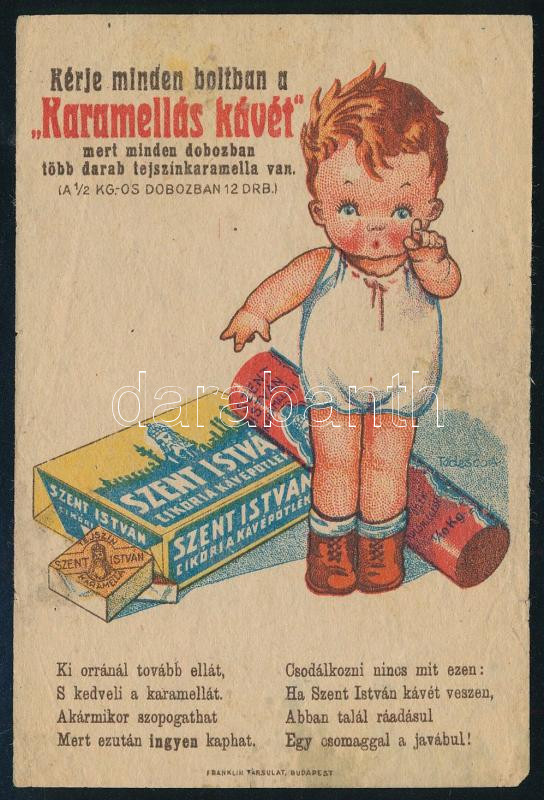 Szent István cikória karamellás kávé számolócédula https://www.darabanth.com/de/457-Fernauktion/457.0/Kunst-Dokumente-andere-Sammelgebiete/Werbungen~2000359/Szent-Istvan-cikoria-karamellas-kave-szamolocedula~II3055309