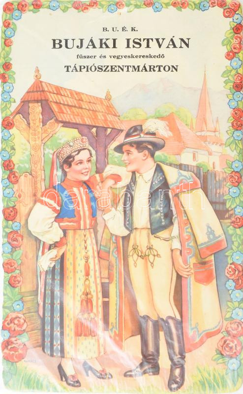 cca 1935 Bujáki István tápiószentmártoni fűszer- és vegyeskereskedő ka... https://www.darabanth.com/de/457-Fernauktion/457.0/Kunst-Dokumente-andere-Sammelgebiete/Werbungen~2000359/cca-1935-Bujaki-Istvan-tapioszentmartoni-fuszer-es-vegyeskereskedo-karton-kaptartartoja-e~II3060421