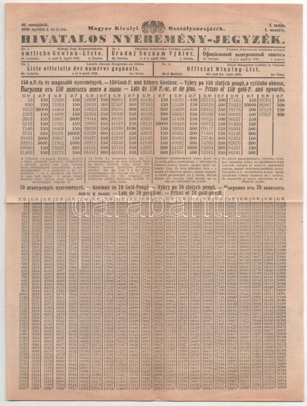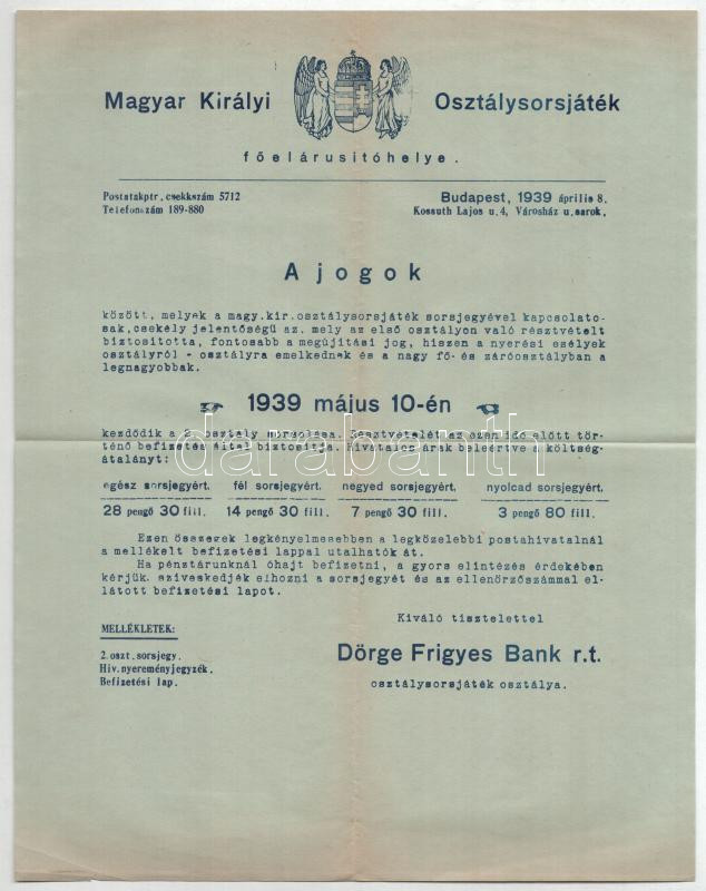1939. "42. Magyar Királyi Osztálysorsjáték" második osztály ... https://www.darabanth.com/de/457-Fernauktion/457.0/Numismatik/Aktien-und-Tickets~6/1939-42-Magyar-Kiralyi-Osztalysorsjatek-masodik-osztaly-egynyolcad-sorsjegye-belyegzesse~II3061173