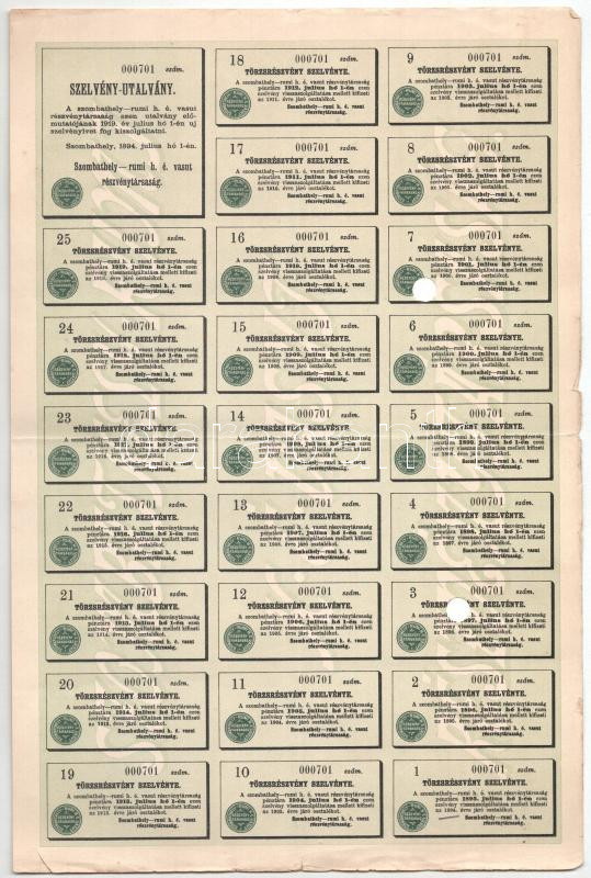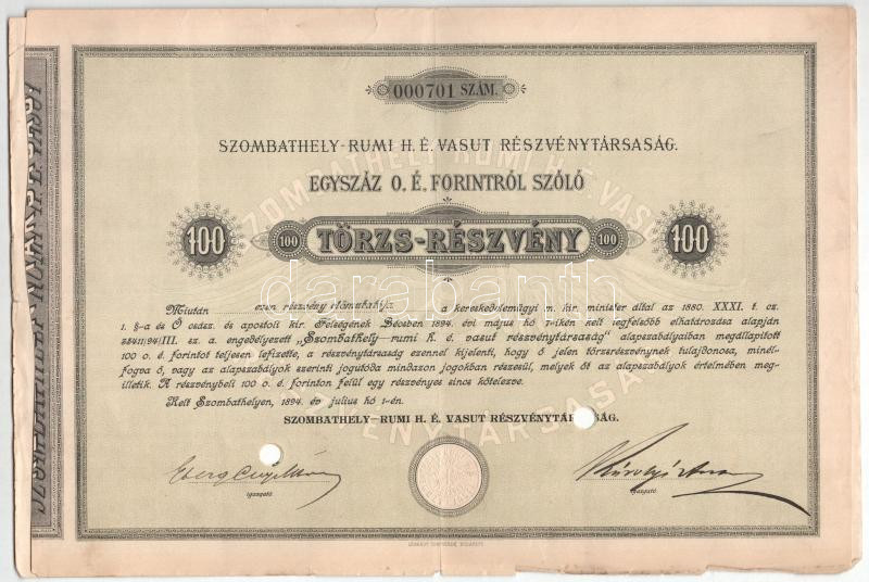 Szombathely 1894. "Szombathely-Rumi Helyi Érdekű Vasút Részvénytá... https://www.darabanth.com/de/457-Fernauktion/457.0/Numismatik/Aktien-und-Tickets~6/Szombathely-1894-Szombathely-Rumi-Helyi-Erdeku-Vasut-Reszvenytarsasag-torzs-reszvenye-1~II3056661