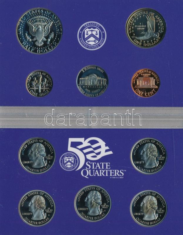 Amerikai Egyesült Államok 2002S 1c-1$ (5xklf) forgalmi sor, műanyag tokban + 1/4$ Cu-Ni "50 állam" (5xklf), műanyag tokban, közös tanúsítvánnyal, karton dísztokban T:PP fo.
