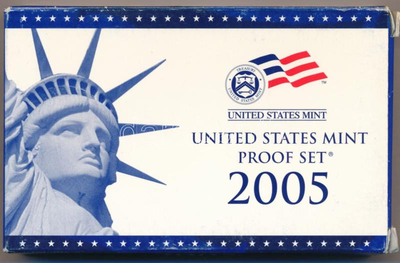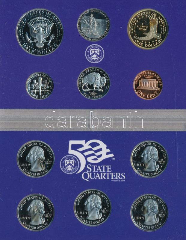 Amerikai Egyesült Államok 2005S 1c-1$ (6xklf) forgalmi sor, műanyag tokban + 1/4$ Cu-Ni "50 állam" (5xklf), műanyag tokban, közös tanúsítvánnyal, karton dísztokban T:PP fo.