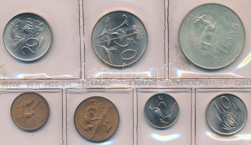 South Africa 1967. 1 Cent - 1 Rand (7xdiff), within 1 Rand Ag "Dr. Verwoerd" coin set in damaged foil pack C:UNC patina