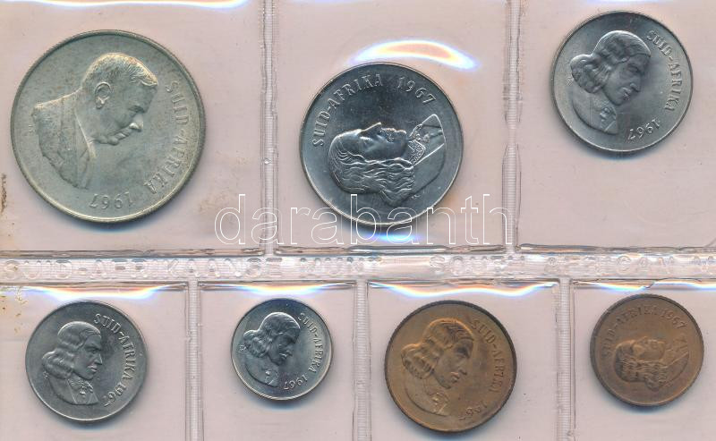 Dél-Afrika 1967. 1c-1R (7xklf), közte 1R Ag "Dr. Verwoerd" forgalmi sor sérült fóliatokban T:UNC patina