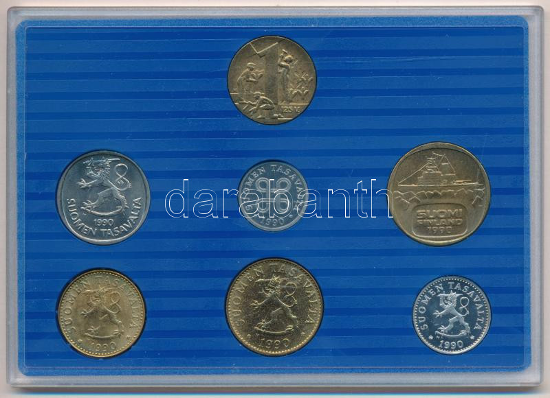 Finnország 1990. 5p-5M (6xklf) forgalmi sor + "Finn verde" zseton szettben, eredeti műanyag tokban, tanúsítvánnyal T:UNC