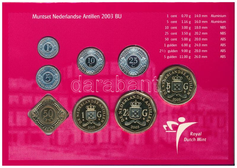 Holland Antillák 2003. 1c - 5G (8xklf) forgalmi sor szettben, karton d... https://www.darabanth.com/de/457-Fernauktion/457.0/Numismatik/Auslandische-Kursmunzsatze~17/Holland-Antillak-2003-1c-5G-8xklf-forgalmi-sor-szettben-karton-disztokban-TBU--Netherlands~II3033659