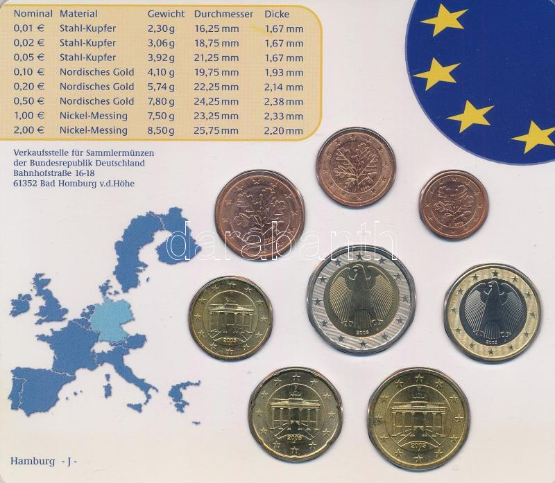 G... https://www.darabanth.com/de/457-Fernauktion/457.0/Numismatik/Auslandische-Kursmunzsatze~17/Nemetorszag-2005J-1c-2E-8xklf-forgalmi-szett-muanyag-tokban-TUNC-Germany-2005J-1-Cent-2-Eur~II3033859