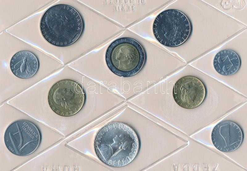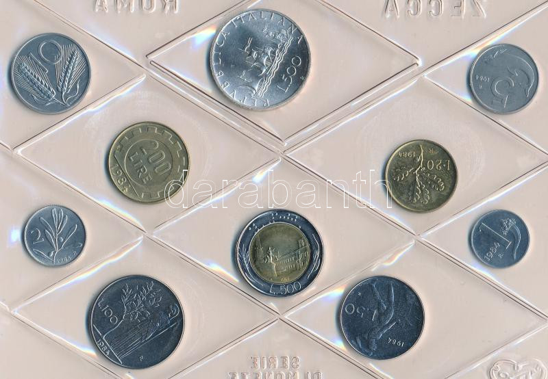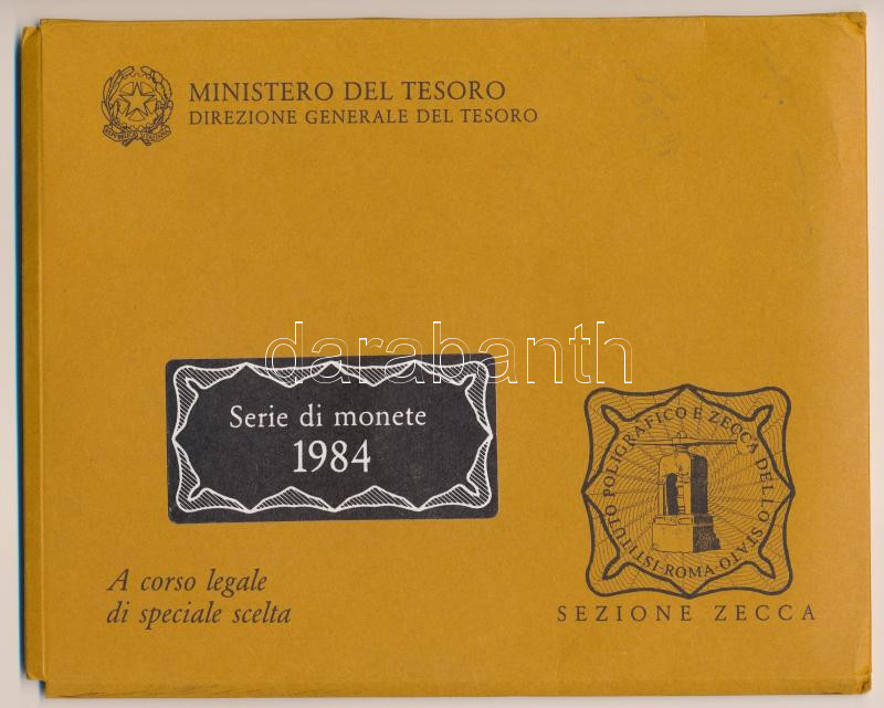 Olaszország 1984. 1L-500L (10xklf) forgalmi sor, közte 500L Ag fóliatokban, tanúsítvánnyal, borítékban T:UNC patina Italy 1984. 1 Lira - 500 Lire (10xdiff) coin set, including 500 Lire Ag in foil pack, with certificate, in envelope C:UNC patina