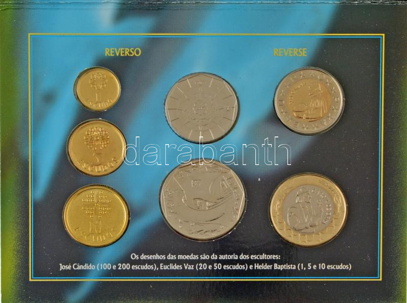 Portugália 1998. 1E-200E (7xklf) + 100E "Expo 98" + 200E &qu... https://www.darabanth.com/de/457-Fernauktion/457.0/Numismatik/Auslandische-Kursmunzsatze~17/Portugalia-1998-1E-200E-7xklf-plus-100E-Expo-98-plus-200E-Expo-98-forgalmi-sor-karton-disztokban~II3033820