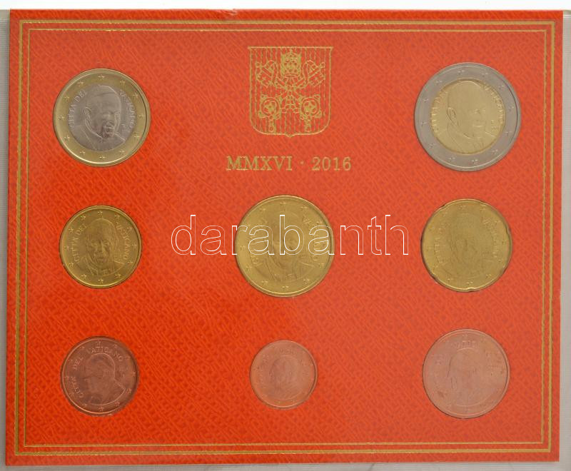 Vatican 2016. 1 Cent - 2 Euro (8xdiff) coin set in original cardboard case C:UNC small damage on the case