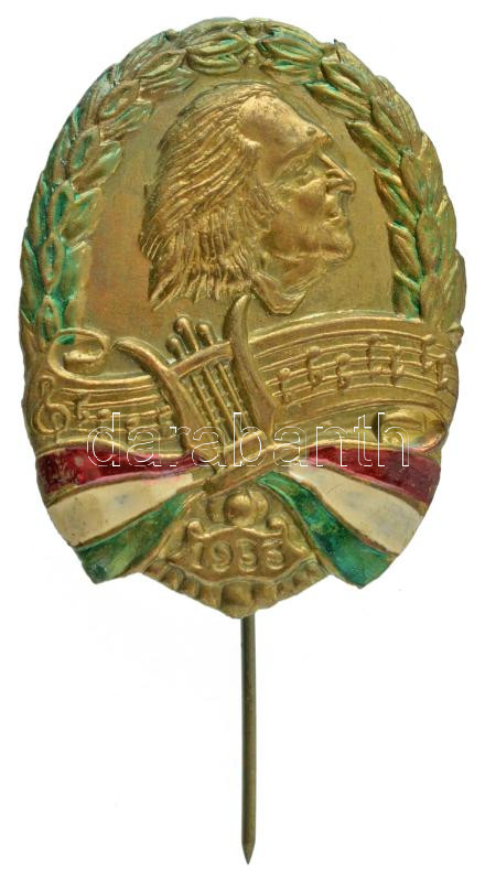 1933. "MDEOSZ (Magyar Dalos Egyesületek Országos Szövetsége) - Liszt Ferenc" festett lemezjelvény (32,5x24mm) T:AU
