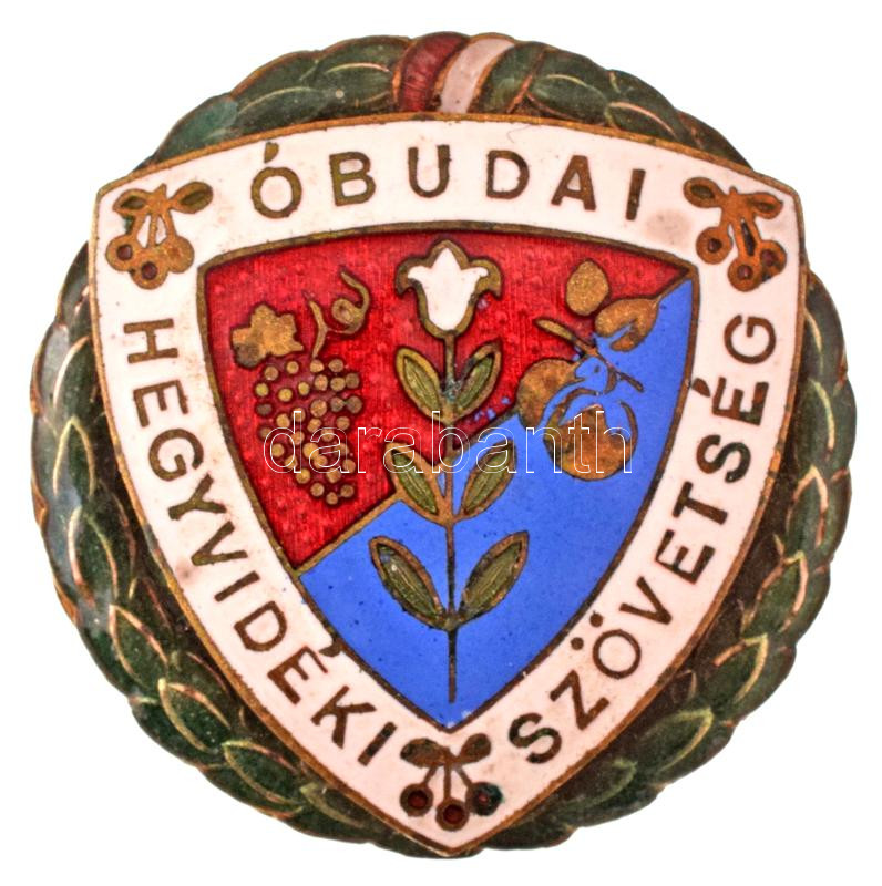 ~1920-1930. "Óbudai Hegyvidéki Szövetség" zománcozott bronz jelvény, hátoldalán "Morzsányi Budapest Eskü út 5." gyártói jelzéssel (~28mm) T:AU kis zománchiba