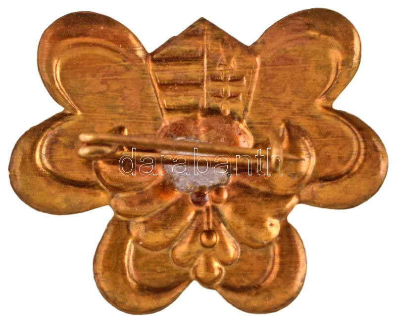 ~1947. Virágos Tildy-címert, lóhere alapon ábrázoló sárgaréz jelvény (22x28mm) T:AU