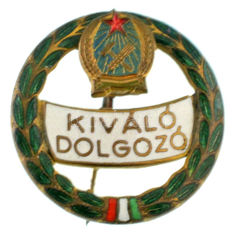 ~1950. "Kiváló Dolgozó" zománcozott fém kitüntető jelvény Rákosi-címerrel (26mm) T:AU,XF