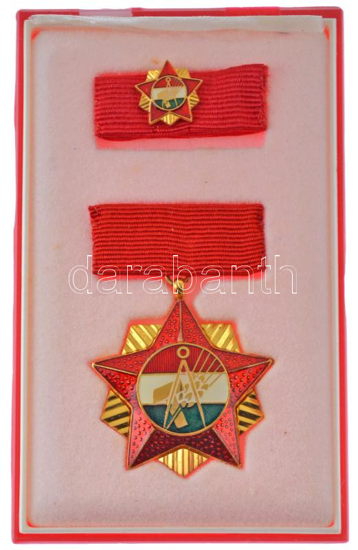 ~1970. "Szakszervezetek Országos Tanácsa" műgyantás kitüntetése, arany fokozat, szalaggal, szalagsávon miniatűrrel, sérült dísztokban T:AU