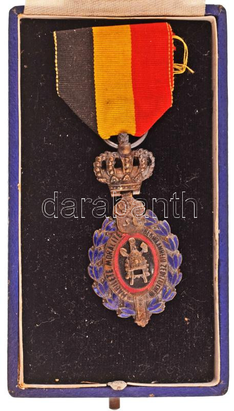 Belgium 1958. "Munka Kitüntetés, ezüst fokozat" ezüstözött, zománcozott kitüntetés eredeti gyártói tokban T:AU patina Belgium 1958. "Labour Decoration, Silver Grade" silver plated, enamelled decoration with ribbon, in original case C:AU patina