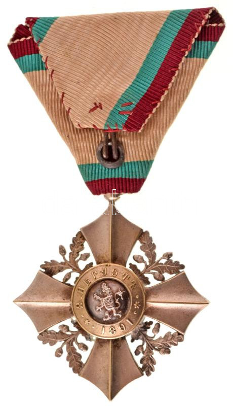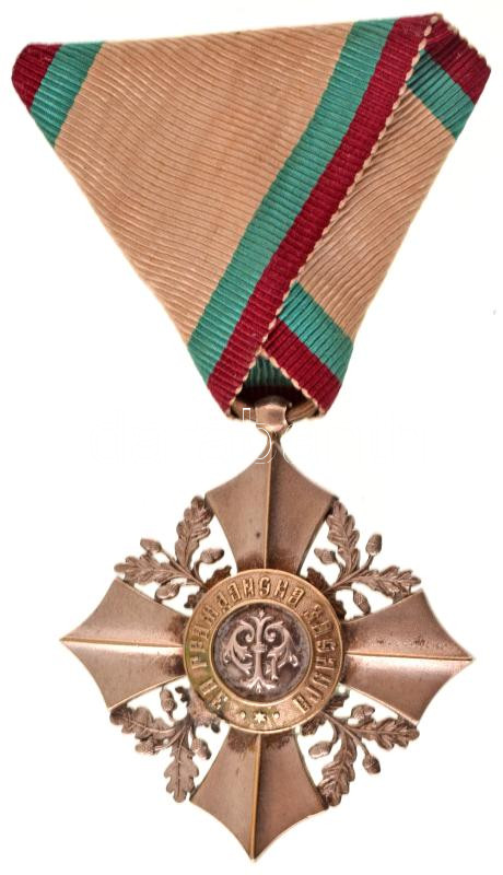 Bulgária (1891- ) "Bolgár Polgári Érdemrend VI. fokozat - Ezüst kereszt" ezüstözött bronz kitüntetés mellszalagon T:XF patina