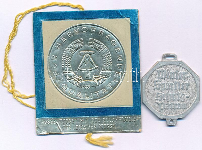 Norvégia DN "Ullr - Télisportolók védőszentje" Al jelvény (33x41mm) + NDK DN "Lipcsei Nemzetközi Vásár" dombornyomott papaír kitüntető jelvény (70x60mm) T:XF Norway ND "Ullr - Winter Sports Enthusiasts Patron Saint" Al badge (33x41mm) + GDR ND "Leipzig International Fair" embossed paper award badge (70x60mm) C:XF