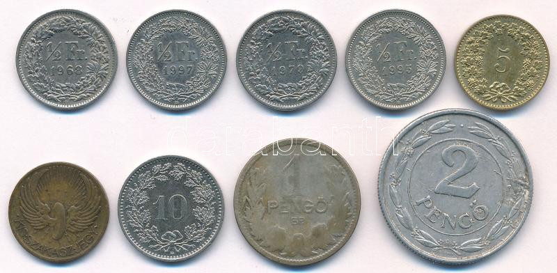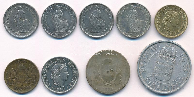 Beschreibung: 9db-os vegyes érme, zseton tétel, közte közte főleg svájci aprópénz + 1926. 1P Ag T:AU-F