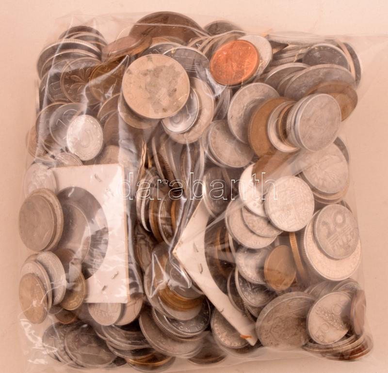 Beschreibung: Vegyes, magyar és külföldi érmetétel mintegy ~1kg súlyban, T:vegyes Mixed, Hungarian and foreign coin lot (~1kg) C:mixed