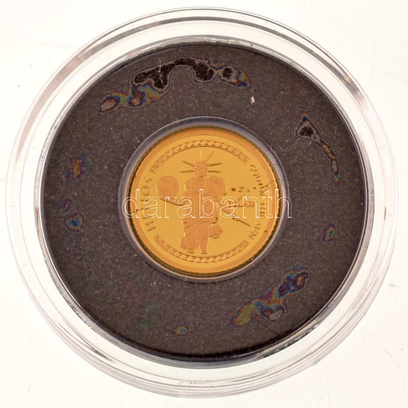 Cook-szigetek 2009. 5$ Au "Héliosz a napisten", "A világ legkisebb arany érméi" tanúsítvánnyal (0,5g/0.999) T:PP