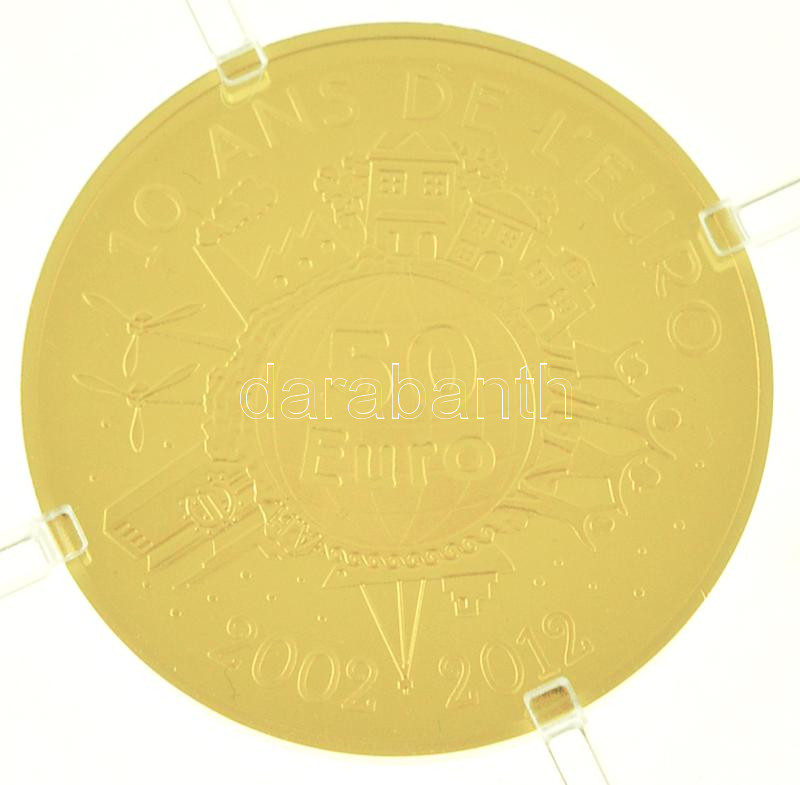 Franciaország 2012. 50E Au "10 éves az euro 2002-2012" tanúsítvánnyal (8,45g/0.920) T:PP France 2012. 50 Euro Au "10 Years of the Euro 2002-2012" with certificate (8,45g/0.920) C:PP
