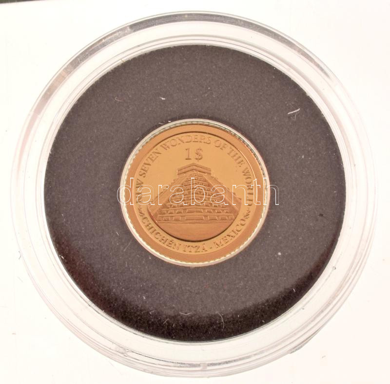 Salamon Szigetek 2013. 1$ Au "A világ 7 új csodája - Chichén-Itzá", "A világ legkisebb arany érméi" tanúsítvánnyal (0,5g/0.585) T:PP