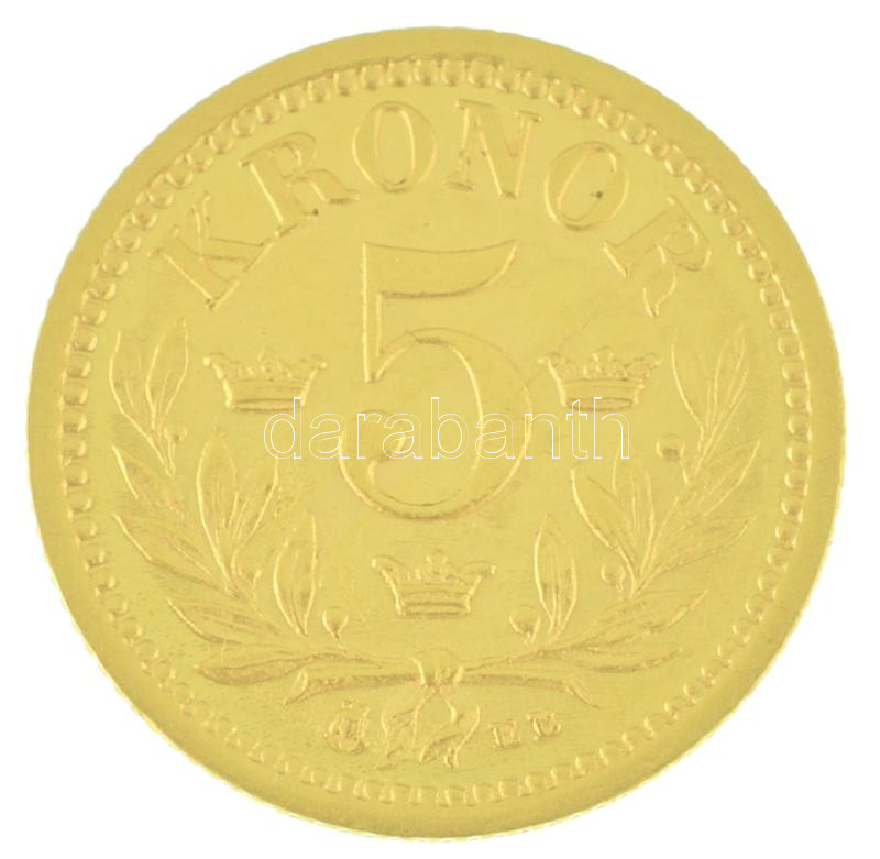 Svédország 1899EB 5Kr Au "II. Oszkár" kapszulában (2,23g/0.900) T:XF Sweden 1899EB 5 Kronor Au "Oscar II" in capsule (2,23g/0.900) C:XF Krause KM#756