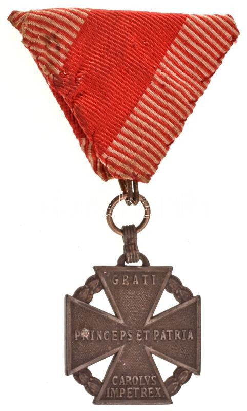 Beschreibung: 1916. "Károly-csapatkereszt" Zn kitüntetés eredeti mellszalagon T:XF oxidáció, kissé sérült szalag