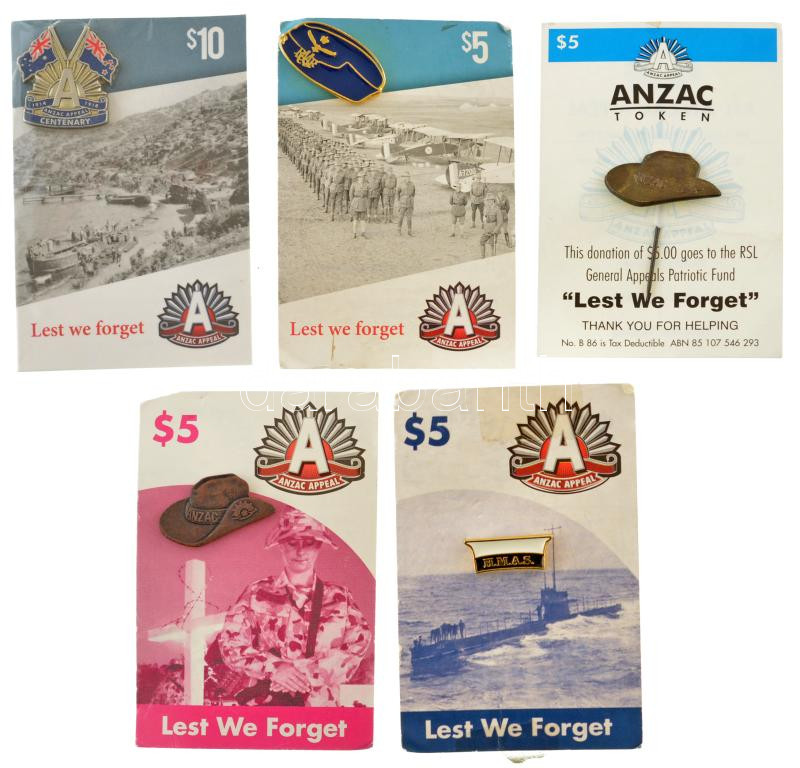 Ausztrália ~2010. 5db klf katonai jótékonysági kitűző tájékoztató lappal T:UNC