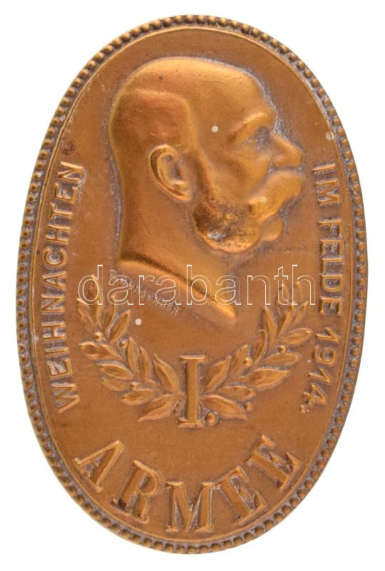 Osztrák-Magyar Monarchia 1914. "I. Hadsereg - Karácsony a fronton 1914" bronz jelvény, "GUSTAV GURSCHNER" gyártói jelzéssel (40x26mm) T:AU / Austro-Hungarian Monarchy 1914. "I. Armee - Weihnachten im Felden 1914" bronze badge, with "GUSTAV GURSCHNER" maker's mark (40x26mm) C:AU