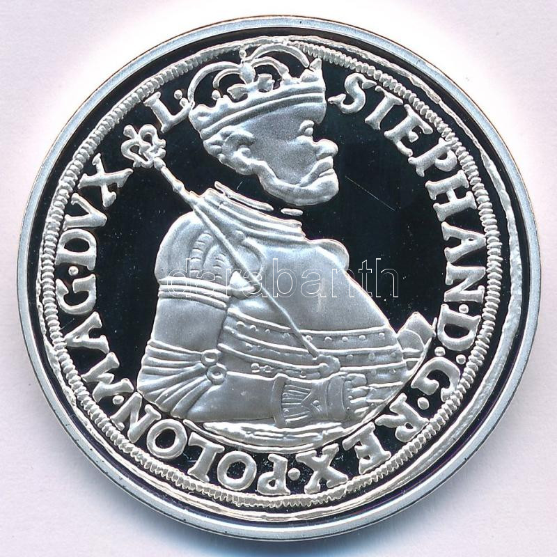 DN "A legértékesebb magyar érmék - Báthori István ezüst tallérjának replikája" ezüstözött Cu emlékérem, "COPY" jelzéssel, tanúsítvánnyal (40mm) T:PP