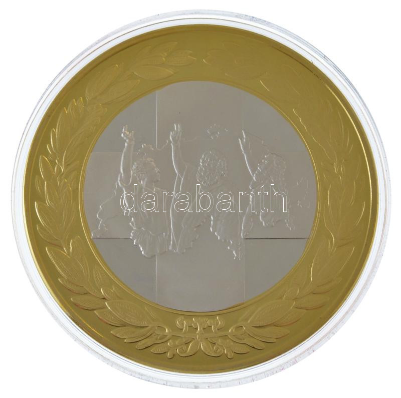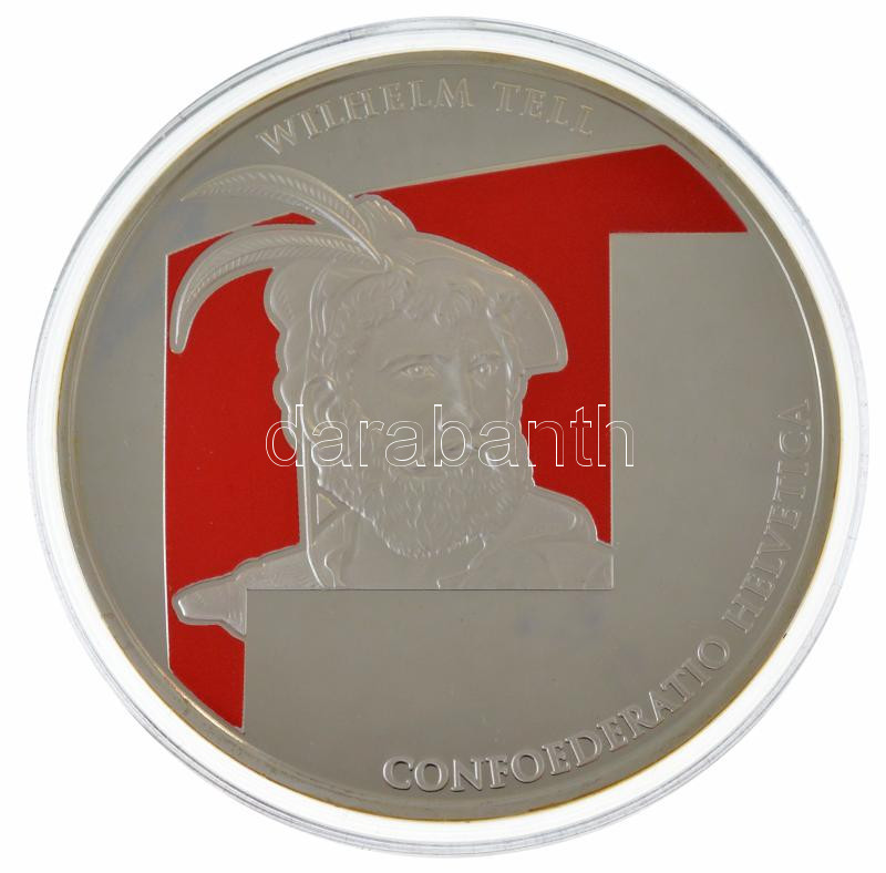 Svájc DN "Tell Vllmos - Confoederatio Helvetica" kétoldalas, ezüstözött, részben multicolor emlékérem (70mm) T:PP Switzerland ND "Wilhelm Tell - Confoederatio Helvetica" two-sided, silver plated, partially multicolor medallion (70mm) C:PP