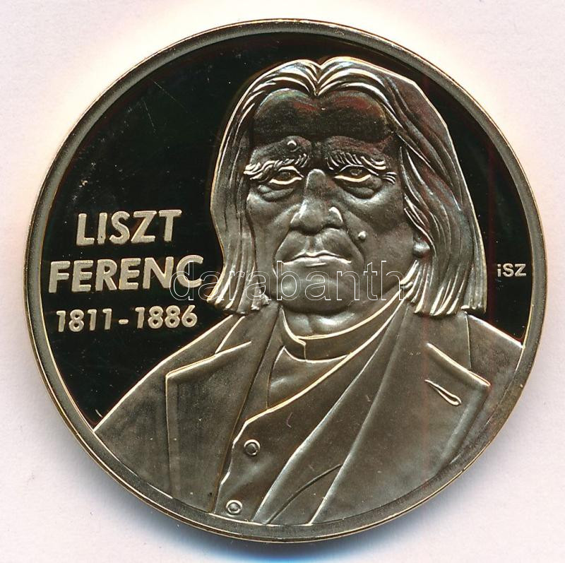 ifj. Szlávics László (1959-) 2012. "Nagy Magyarok / Liszt Ferenc" aranyozott Cu emlékérem tanúsítvánnyal (40mm) T:PP ujjlenyomat