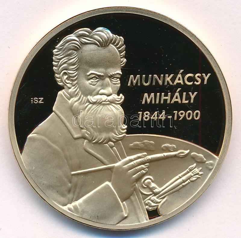 ifj. Szlávics László (1959-) 2012. "Nagy Magyarok / Munkácsy Mihály" aranyozott Cu emlékérem tanúsítvánnyal (40mm) T:PP