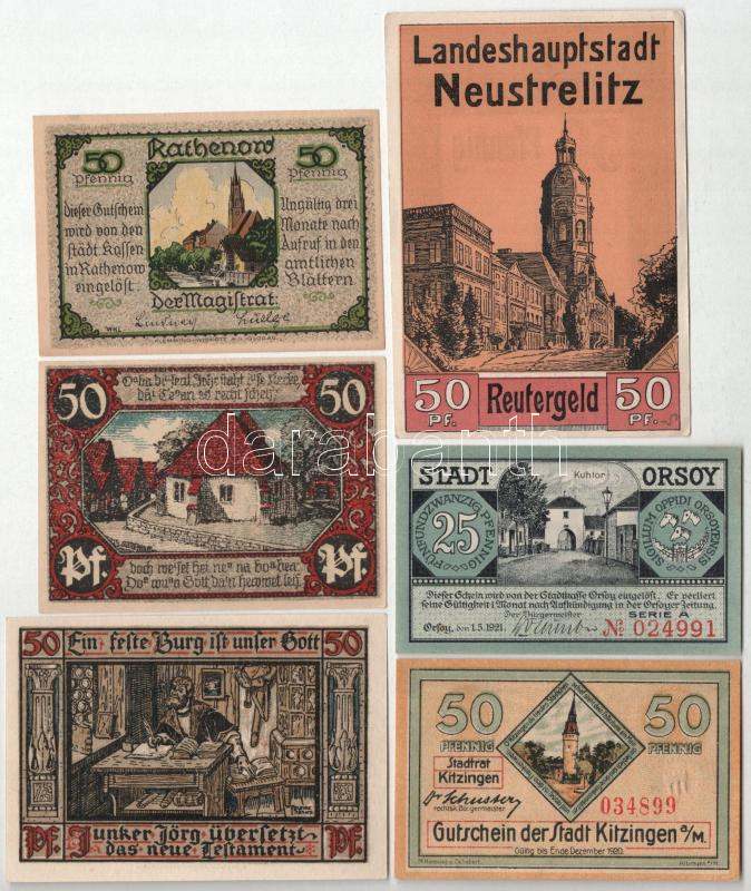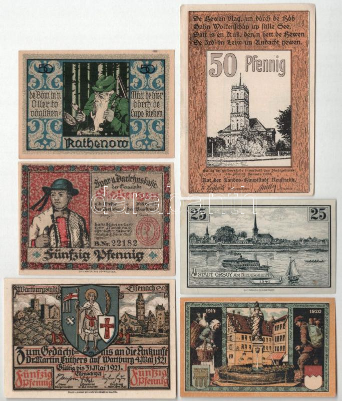 Németország / Weimari Köztársaság 1920-1922. 6db klf szükségpénz T:UNC,AU egyiken apró beszakadás