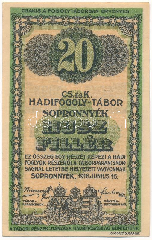 Sopronnyék / hadifogolytábor 1916. 20f arab sorozat- és sorszámmal &qu... https://www.darabanth.com/de/457-Fernauktion/457.0/Numismatik/Notgeld-aus-Papier-und-Metall~7/Sopronnyek-hadifogolytabor-1916-20f-arab-sorozat-es-sorszammal-24-0898-TAU-Adamo-HHP-13~II2897244