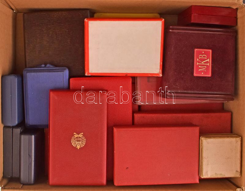 Beschreibung: Vegyes 19db-os üres jelvény, kitüntetés és emlékérem tok tétel